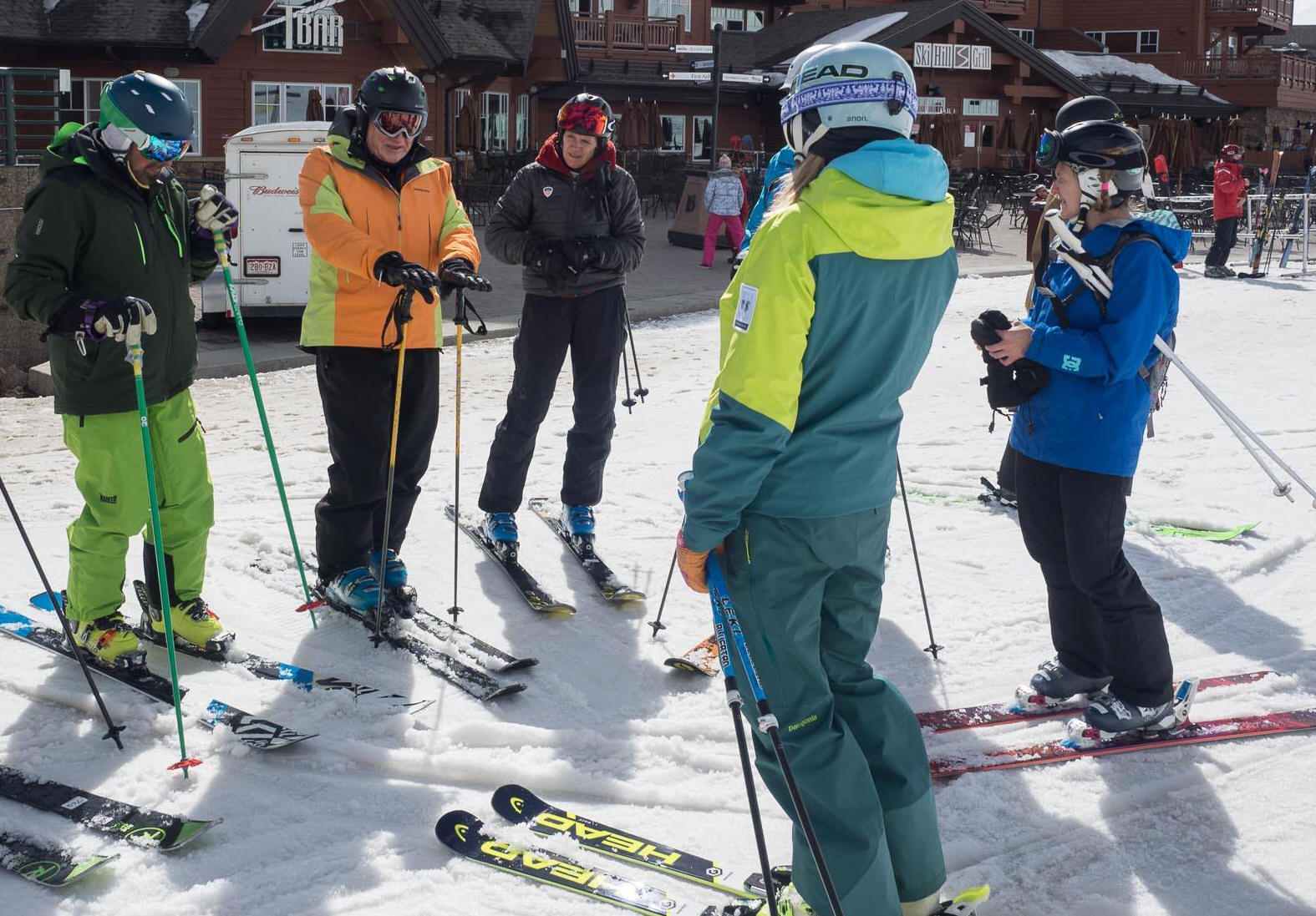 2016. Jim, in the orange parka, teaches skiing at Monarch.